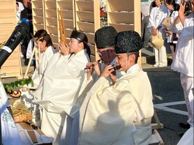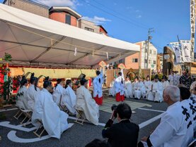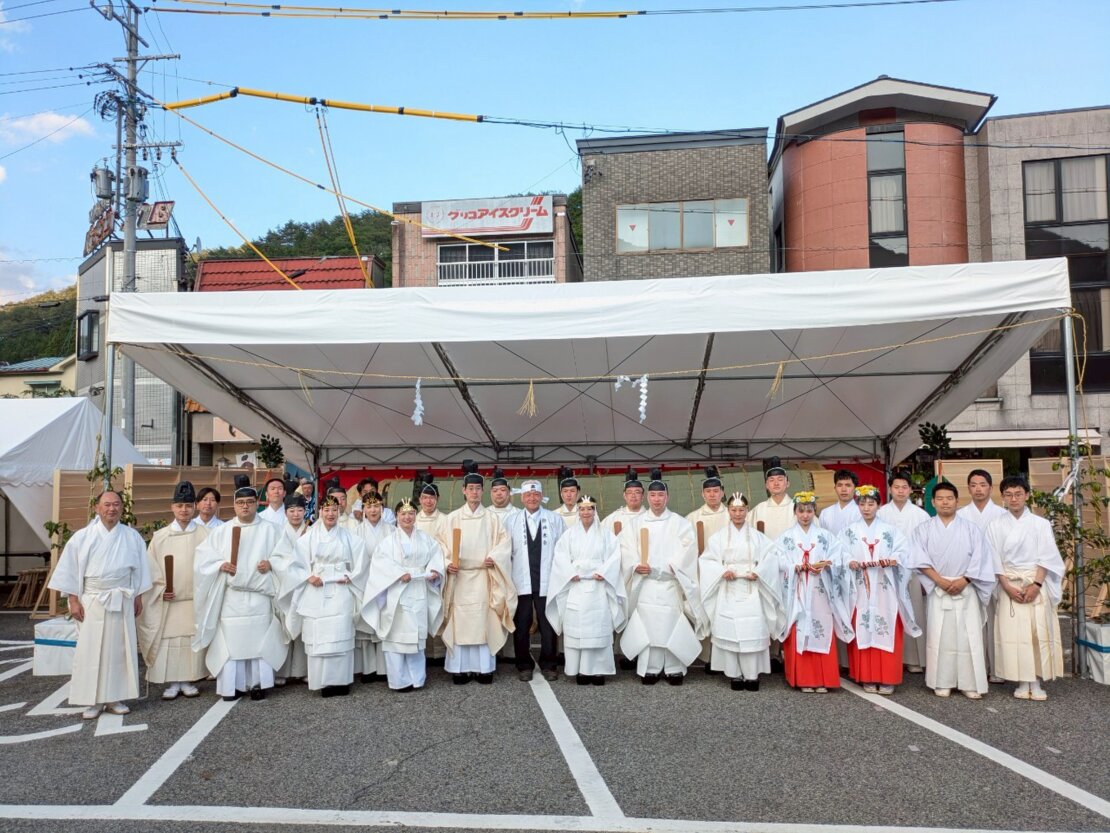 御木曳行事の奉仕の後は、祭場を整え、御神木奉安祭を奉仕致しました。曳行行事に関係者の多くが参加したこともあり、祭場の準備の進行度合い等、当初の想定と若干の齟齬はあったかとは思いますが、全員で協力し、祭典は無事斎行されました。斎服や装束を身に纏った祭員の皆さんは勿論のこと、祭員に当たらなかった会員にも祭典中にそれぞれ役割があり、全員で作り上げたお祭りであったかと思います。