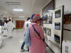 前日の激しい降雨とは打って変わり、肌を刺すような日差しの元、諸行事は催行されました。早朝、上松町諏訪神社へと集合し、木曽支部の越取神職、神青会毛利会長の指揮の元、午前中は観覧者への国旗の配布や、奉安祭の祭場の弁備、式年遷宮諸行事のパネル展示などを行いました。私は主に国旗の配布を担当し、曳行順路には、地元の方々をはじめ、二十年に一度のご遷宮において御樋代となる御神木、その御神木を曳行する行列を一目見ようと、沢山の方々が集まっていました。国旗の配布を通して、多くの方の関心を集めている行事であるということを改めて認識しました。
